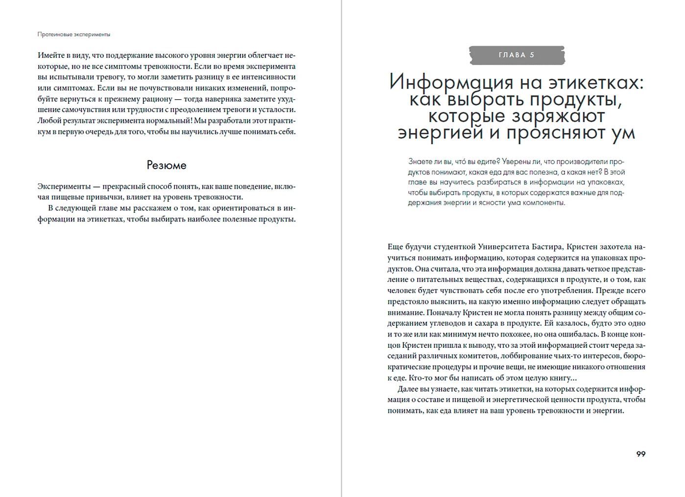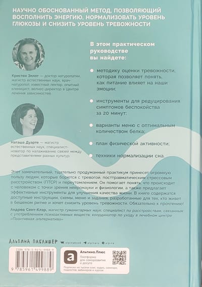 В своей книге ученые Кристен Эллот и Наташа Дуарте рассказывают о том, как соотношение белков и углеводов в рационе человека влияет на ясность ума, жизненную силу и эмоции, а главное, какие продукты могут усиливать тревожность. Из этого практического руководства вы узнаете, как настроить режим питания и сна таким образом, чтобы преодолевать усталость, быстро восстанавливать силы и справляться с тревожными состояниями. А еще разберетесь, что на самом деле написано на продуктовых этикетках, узнаете, сколько нужно спать, чтобы хорошо высыпаться, и научитесь быстро восстанавливать энергию. В этом помогут простые упражнения, разумные советы и проверенные планы питания.