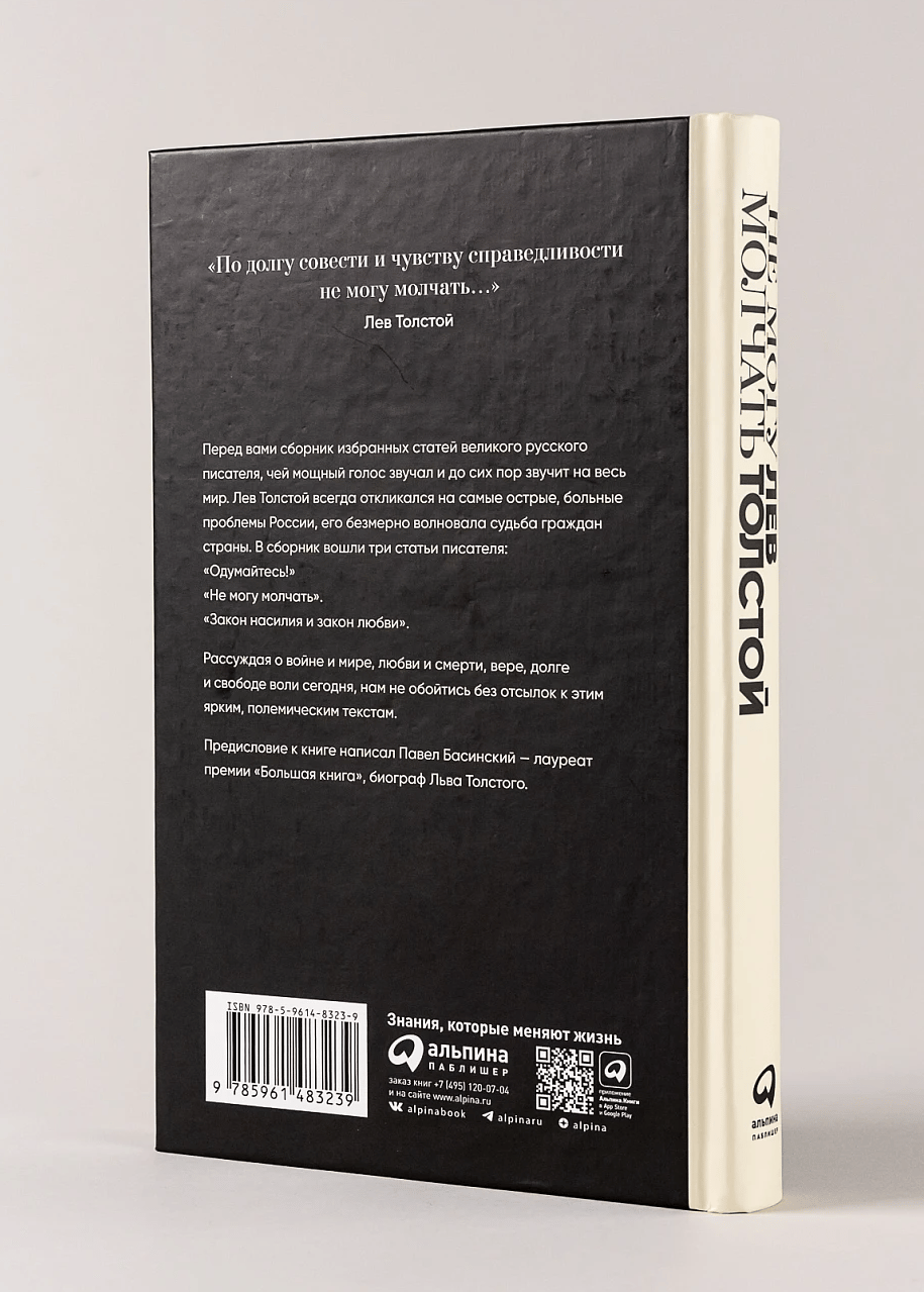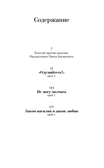 Перед вами сборник избранных статей великого русского писателя, чей мощный голос звучал и до сих пор звучит на весь мир. Лев Толстой всегда откликался на самые острые, больные проблемы России, его безмерно волновала судьба граждан страны. В сборник вошли три статьи писателя, раскрывающие его дар мыслителя и публициста. «Одумайтесь!» — антивоенная статья. Она была написана после начала Русско-японской войны, впервые увидела свет на английском языке из-за цензуры. В манифесте «Не могу молчать» писатель решительно высказывается против смертной казни, а в статье «Закон насилия и закон любви» осуждает всякое насилие одних людей над другими. Рассуждая о войне и мире, любви и смерти, вере, долге и свободе воли сегодня, нам не обойтись без отсылок к этим ярким, полемическим текстам. Предисловие к книге написал Павел Басинский — лауреат премии «Большая книга», биограф Льва Толстого.