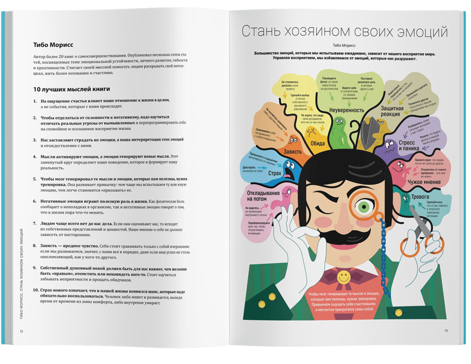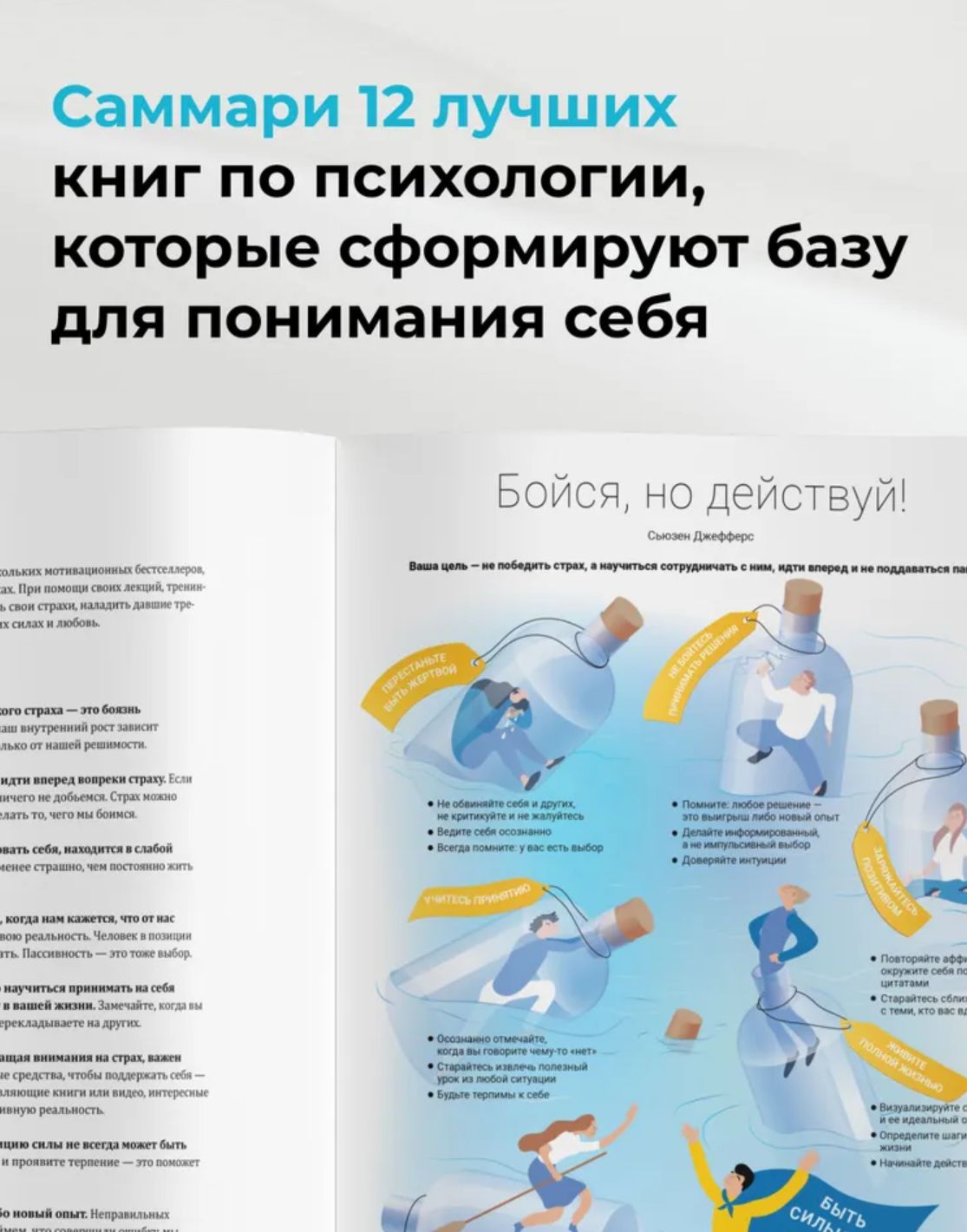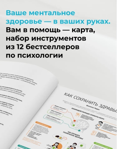Мы собрали в этом сборнике саммари 12 лучших книг по психологии, которые сформируют базу для понимания себя и дадут практические советы, вселяющие уверенность, что ваше ментальное здоровье – в ваших руках. Мы снабдили сборник яркими и жизнерадостными инфографиками для мотивации и визуального запоминания главных мыслей.