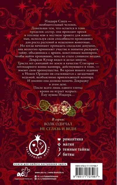 Изадора Савуа — необщительный человек. Довольная тем, что остается в тени проделок сестер, она проводит время в теплице или в местном приюте для животных, используя свои способности проводника для роста растений и исцеления животных. Но когда начинают пропадать соседские девушки, она неохотно принимает участие в попытке раскрыть тайну, объединяясь с ярким, кокетливым вампиром, чтобы найти пропавших, пока не стало слишком поздно.