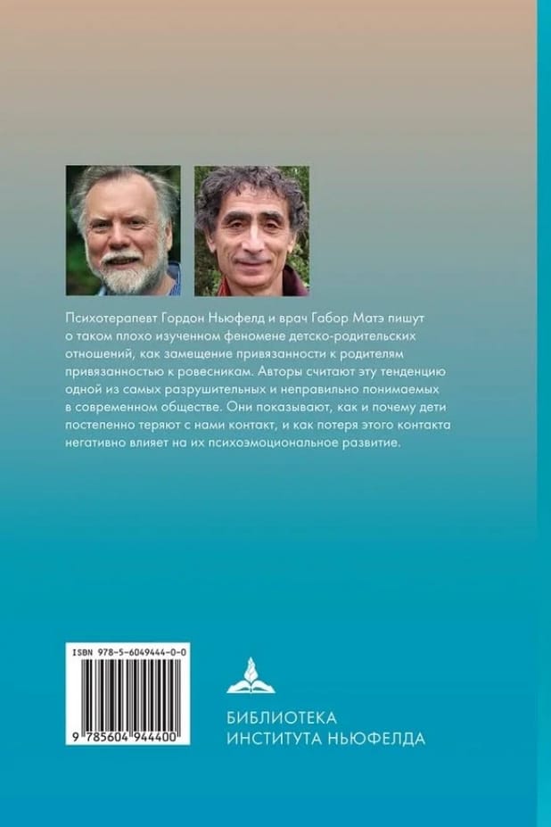 Психотерапевт Г.Ньюфелд и врач Г.Матэ пишут о таком плохо изученном феномене детско-родительских отношений, как замещение привязанности к родителям привязанностью к ровесникам. Авторы считают эту тенденцию одной из самых разрушительных и неправильно понимаемых в современном обществе. Они показывают, как и почему дети постепенно теряют с нами контакт, и как потеря этого контакта негативно влияет на их психоэмоциональное развитие. Книга будет полезна родителям детей любого возраста - от малышей до подростков, психологам, а также всем, кто по роду деятельности призван заботиться о детях.