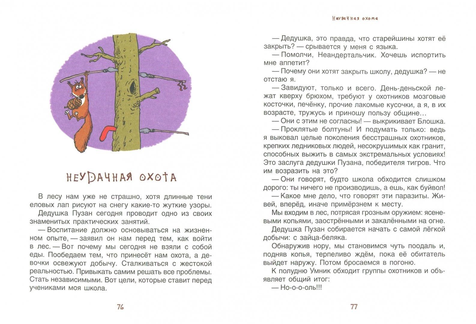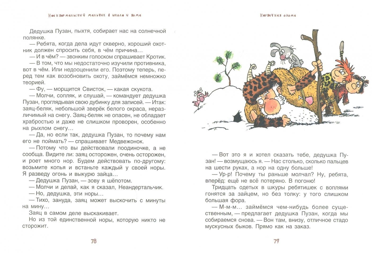 Ледниковые люди очень чистоплотны. Они моются два раза в год: в начале и в конце долгой зимы. Ледниковые люди очень красивы. Они массивные, как быки, горбатые, как бизоны, и мохнатые, как медведи. Ледниковые дети ходят в школу. Охота, рыбалка и собирательство — основные уроки. Но есть и другие: обработка кремня, постройка хижины, магический рисунок... Вместо контрольной проводят Испытание Мальчика-с-пальчик. А вместо оценок выдают Годовые Копья разного размера. О буднях и праздниках, приключениях и развлечениях ледниковых детей расскажет Неандертальский мальчик. Его историю оживил самый весёлый детский художник — дядя Коля Воронцов. Добро пожаловать в ледниковый период!