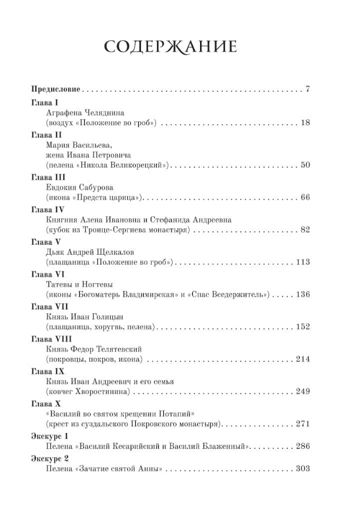 В книге представлен взгляд филологов на целый ряд произведений русского искусства XVI–XVII вв. (как самых известных, так и тех, что почти не привлекали внимания исследователей). В основе каждой главы лежит ономастическая загадка, связанная с конкретной вещью — роскошно вышитой пеленой, серебряным кубком, напрестольным крестом или иконой… Судьбы этих драгоценных артефактов зачастую служат ключом для воссоздания историй их владельцев (будущего царя Василия Шуйского, «премьер- министра» грозненского времени Андрея Щелкалова, воеводы Ивана Голицына, одного из первых русских литераторов- вольнодумцев князя Хворостинина, няньки Ивана Грозного…), а заодно и картины угасания множества элитарных родов, будь то Татевы и Ногтевы, Челяднины или Телятевские, последних вспышек их славы и долгого посмертного поминовения.