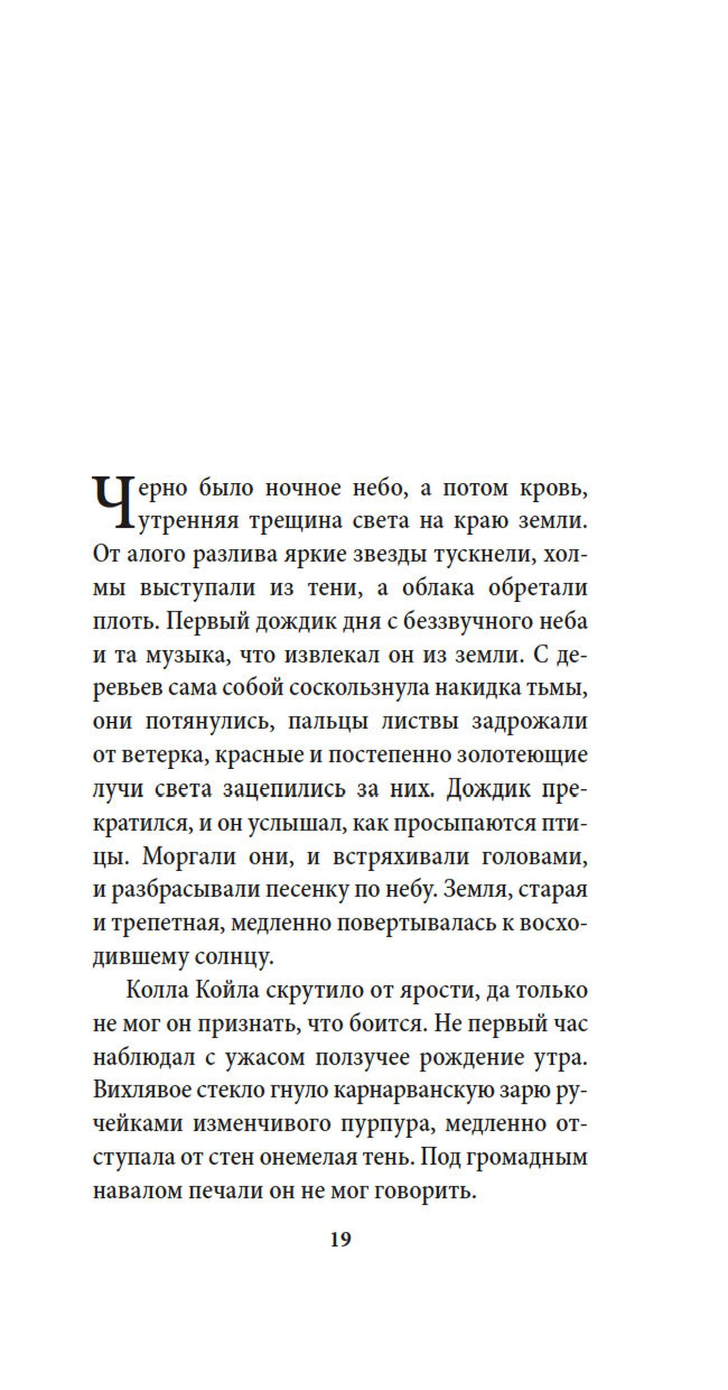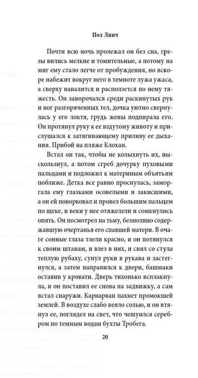 Впервые на русском — дебютный роман современного ирландского классика Пола Линча, лауреата Букеровской премии 2023 года за роман «Песнь пророка», который уже называют «ирландским „1984“» и «новым „Рассказом служанки“». «Небо красно поутру» — это экзистенциальная панорама безжалостности человека и безразличия природы. В этом «трансконтинентальном вестерне, написанном мастером пейзажа и света» (Livres Hebdo), Колл Койл (отец героини «Благодати» Грейс Койл), совершив непредумышленное убийство, вынужден бежать из Ирландии на другой край земли, и через Атлантику и американский фронтир его неутомимо преследует демонический нарядчик Джон Фоллер, словно сошедший со страниц «Кровавого меридиана» Кормака Маккарти...