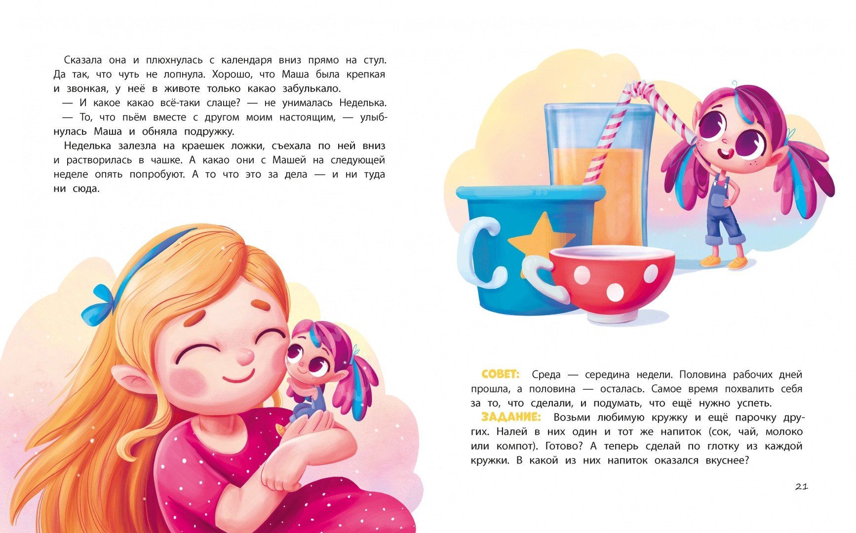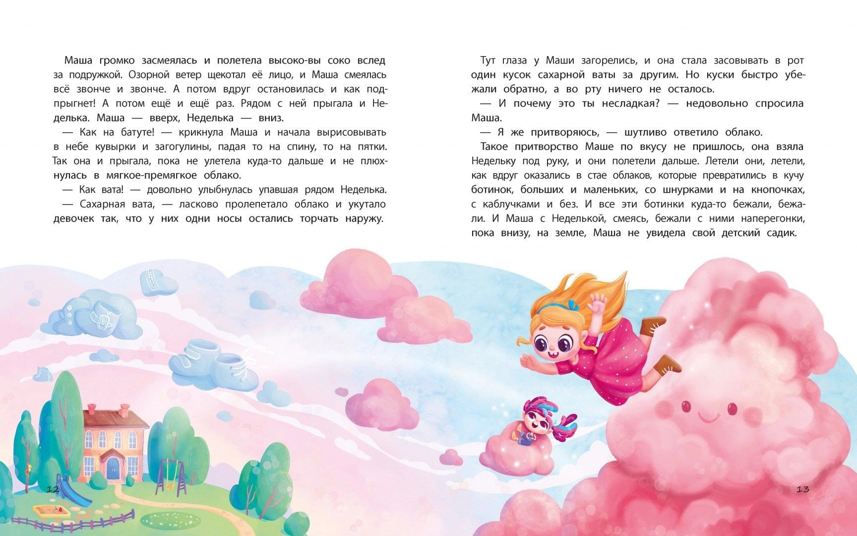 Настоящего друга можно найти где угодно... даже в тарелке с кашей! А отправиться в весёлое путешествие по облакам - и вовсе не выходя из дома. Вместе с озорной подругой Неделькой Маша идёт в гости к Манной Каше, лакомится сладкой ватой из облаков, изобретает машину времени... И это ещё не всё, ведь впереди маленьких выдумщиц ждёт много приключений длиной в целую неделю!