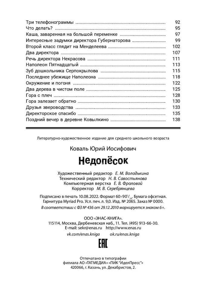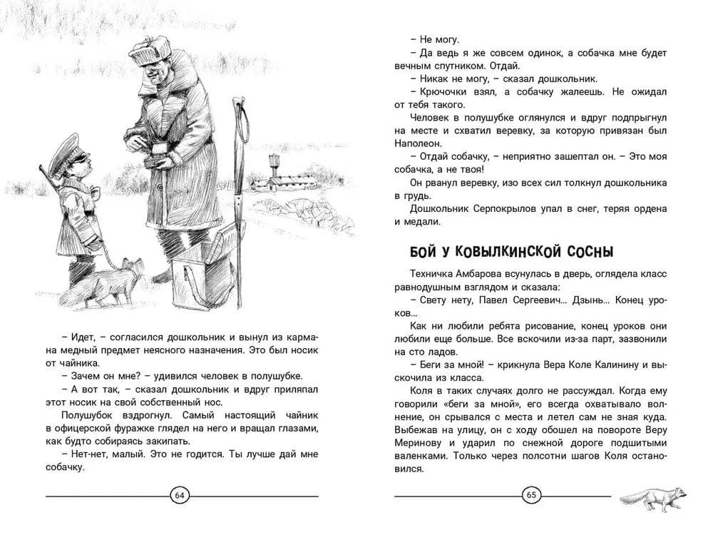 «Недопёсок» – одна из самых известных повестей Юрия Коваля. Захватывающий сюжет, тонкий юмор, трепетное отношение к животным – диким и домашним, – яркие персонажи отличают произведения этого писателя. Главный герой повести – молодой песец, «недопёсок» Наполеон Третий, который сумел выбраться из клетки на звероферме и отправился странствовать. И не куда-нибудь, а домой – строго на Север. Множество серьезных взрослых людей ищут Наполеона. А он спрятался в деревне Ковылкино, где живет дошкольник Серпокрылов, который убежден, что самое главное на свете – это свобода. После долгих поисков и забавных приключений недопёска все-таки возвращают на ферму. Но его друзья уверены, что он непременно снова убежит и обязательно доберется до своего Северного полюса...