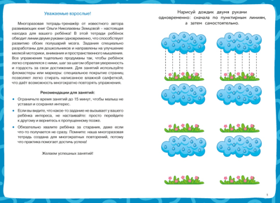 Многоразовая тетрадь разработана известным педагогом и автором развивающих пособий О. Н. Земцовой специально для того, чтобы сделать процесс обучения дошкольников по-настоящему интересным и удобным.