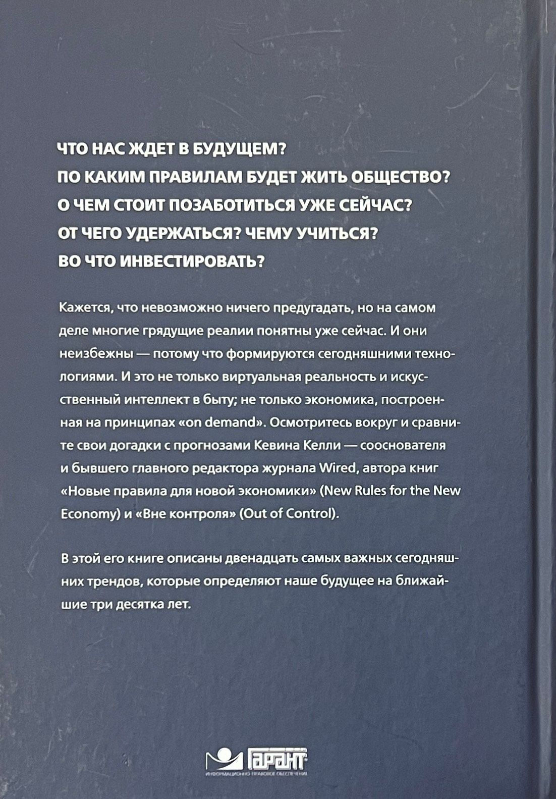 Многое из того, что произойдет в ближайшие 30 лет, неизбежно и предопределено сегодняшними технологическими трендами. Кевин Келли, один из ведущих мыслителей современности, показывает, как сегодняшние изменения, не всегда заметные, в итоге перевернут мир.