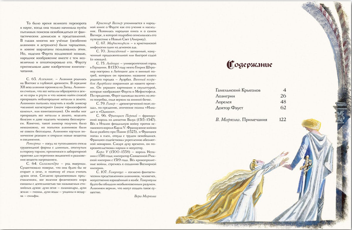В настоящий сборник вошли наиболее известные легенды, родившиеся в Средние века в Германии: о гамельнском крысолове, избавившем город от наводнивших его крыс, но не получившем за это условленную плату; о Лоэнгрине - прекрасном рыцаре Лебедя, время от времени появляющемся там, где нужно защищать слабых и обиженных; о речной фее Лорелей, поющей на скале обольстительную песню, заманивающую пловцов в губительный водоворот; о чернокнижнике-маге докторе Фаусте, продавшем свою душу дьяволу, между тем возвеличенном и опоэтизированном народным воображением.