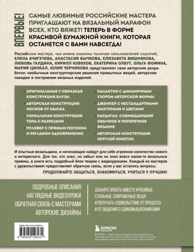 Самые любимые российские мастера приглашают на вязальный марафон всех, кто любит вязать в компании единомышленников! Теперь любимые марафоны и совместники в форме красивой бумажной книги, которая останется с вами навсегда.