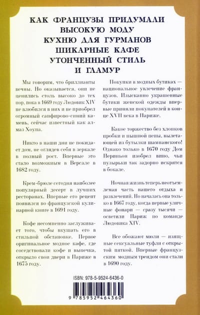 Эта книга о том, как французы изобрели высокую моду, утонченную кухню, шампанское, шикарные кафе и ночную жизнь в сиянии огней — все, что составляет квинтэссенцию стиля, его суть и притягательную силу.