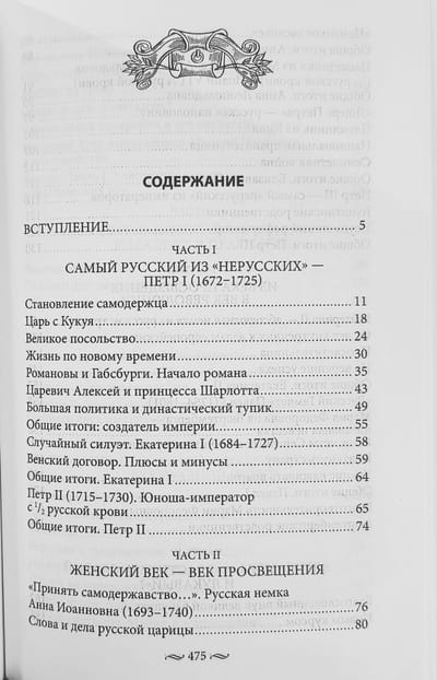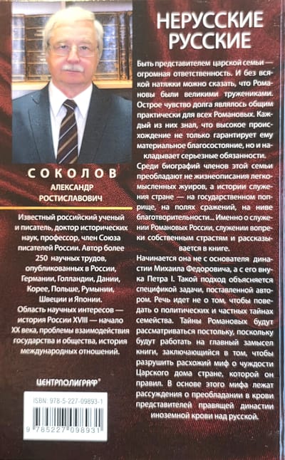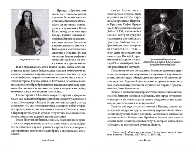 Быть представителем царской семьи — огромная ответственность. И без всякой натяжки можно сказать, что Романовы были великими тружениками. Острое чувство долга являлось общим практически для всех Романовых. Каждый из них знал, что высокое происхождение не только гарантирует ему материальное благосостояние, но и накладывает серьезные обязанности. Среди биографий членов этой семьи преобладают не жизнеописания легкомысленных жуиров, а истории служения стране — на государственном поприще, на полях сражений, на ниве благотворительности... Именно о служении Романовых России, служении вопреки собственным страстям и рассказывается в книге. Начинается она не с основателя династии Михаила Федоровича, а с его внука Петра I. Такой подход объясняется спецификой задачи, поставленной автором. Речь идет не о том, чтобы поведать о политических и частных тайнах семейства. Тайны Романовых будут рассматриваться постольку, поскольку будут работать на главный замысел книги, заключающийся в том, чтобы разрушить расхожий миф о чуждости Царского дома стране, которой он правил. В основе этого мифа лежат рассуждения о преобладании в крови представителей правящей династии иноземной крови над русской.