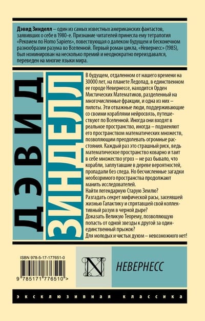 Дэвид Зинделл – один из самых известных американских фантастов, заявивших о себе в 1980-е. Признание читателей принесла ему тетралогия «Реквием по Homo Sapiens», повествующая о далеком будущем и бесконечном разнообразии разума во Вселенной. Первый роман цикла, «Невернесс» (1985), был номинирован на несколько премий и неоднократно переиздавался, переведен на многие языки мира.