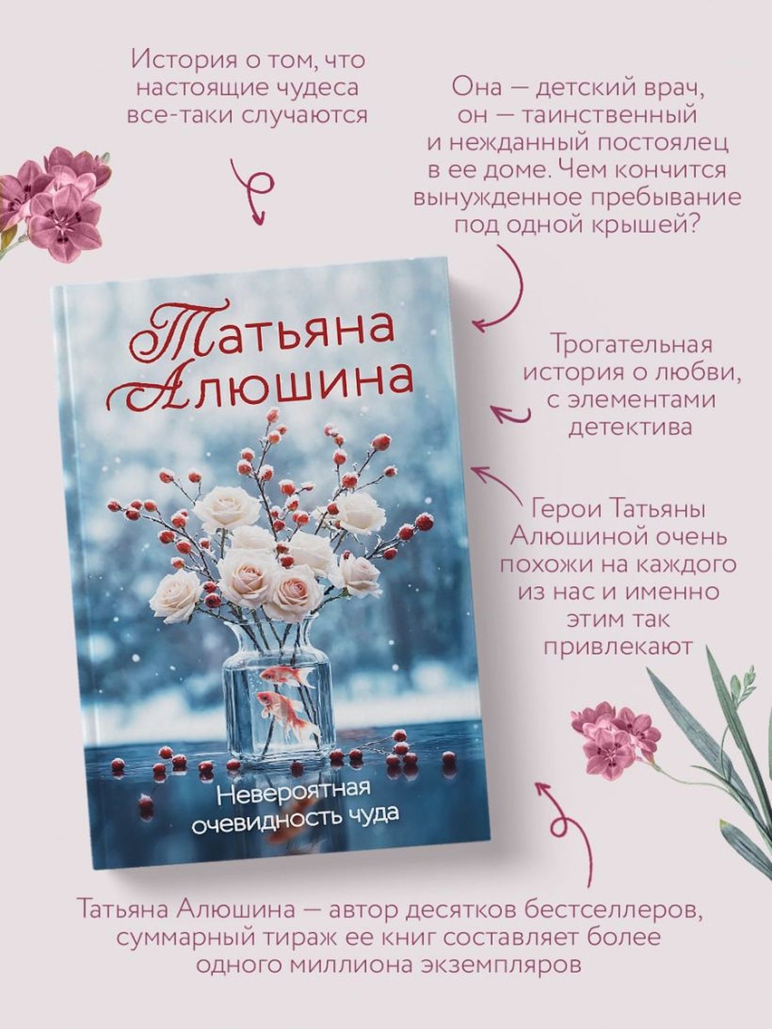 Романы Татьяны Алюшиной — это вдохновляющие истории о настоящей любви, творящейся здесь и сейчас, как будто у нас на глазах. Герои ее книг — простые люди. Кажется, что это мы сами на страницах романа: влюбляемся, ошибаемся и неустанно ищем счастья. Поэтому книги Татьяны Алюшиной завоевывают сердца и мгновенно становятся бестселлерами. Полюбите их и вы!