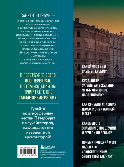 В подарочном издании «Невероятные мосты Петербурга. Прогулка по самым известным мостам города» представлено уникальное восприятие города через мосты и архитектурные памятники, а прочувствовать колорит и атмосферу вам помогут красочные фотографии.