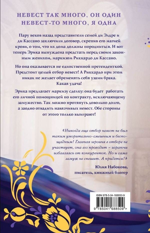 Непросто быть знатным холостяком, пусть и обремененным сыном-подростком. Все-то хотят его женить. И королева, и мать, и даже призрак давнего предка. Маркиз Риккардо ди Кассано попадает в неловкую ситуацию с толпой девиц, желающих стать его супругами. И всё бы ничего, сбежал бы, выкрутился, но тут сваливается как снег на голову еще одна невеста, некая Эрика ди Элдре. И вот тут уже не отвертеться. Да-да, за это стоит сказать «спасибо» предкам и магическому брачному договору. А что же Эрика? Она-то совсем не хочет замуж за непонятного маркиза. У нее своих проблем хватает, но как-то нужно выкручиваться. И два человека, которые совершенно не желают вступать в брак, заключают договор. Отныне Эрика — очень-очень личный ассистент его сиятельства. И ее первоочередная задача — спасти своего шефа от толпы невест. Ведь невест так много, а он один.