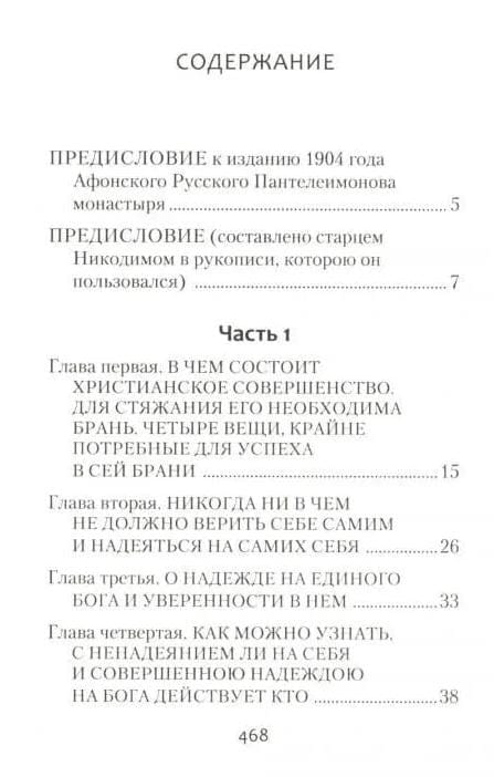 Настоящая душеполезная книжица справедливо носит данное ей наименование: «Невидимая брань». Как многие из священных и богодухновенных книг Ветхого и Нового Завета получили свое наименование от самых предметов, о коих они поучают... и указывают всем верный путь ко спасению и наследию вечно блаженной жизни, так кто не согласится, что и настоящая книга, судя по содержанию ее и по предметам, которыми она занимается, достодолжно названа «Брань невидимая»? Ибо она поучает не о какой-либо чувственной и видимой брани и не о врагах явных и телесных, но о брани мысленной и невидимой, какую каждый христианин восприемлет с того часа, как окреститься и даст пред Богом обет — воевать за Него во славу божественного имени Его даже до смерти...