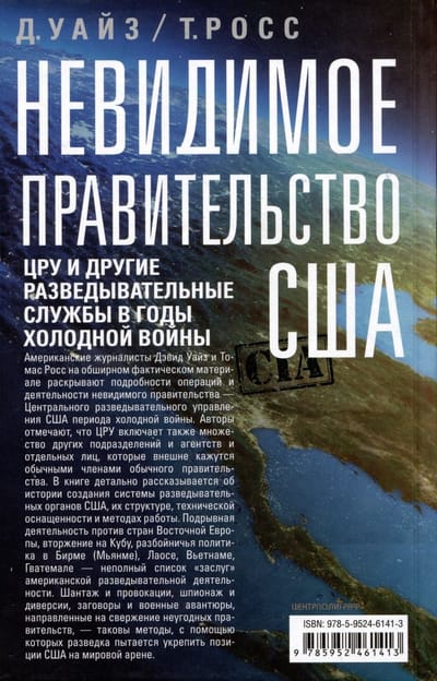 Американские журналисты Дэвид Уайз и Томас Росс на обширном фактическом материале раскрывают подробности операций и деятельности невидимого правительства — Центрального разведывательного управления США периода холодной войны. Авторы отмечают, что ЦРУ включает также множество других подразделений и агентств и отдельных лиц, которые внешне кажутся обычными членами обычного правительства. В книге детально рассказывается об истории создания системы разведывательных органов США, их структуре, технической оснащенности и методах работы. Подрывная деятельность против стран Восточной Европы, вторжение на Кубу, разбойничья политика в Бирме, Лаосе, Вьетнаме, Гватемале — неполный список «заслуг» американской разведывательной деятельности. Шантаж и провокации, шпионаж и диверсии, заговоры и военные авантюры, направленные на свержение неугодных правительств, — таковы методы, с помощью которых разведка пытается укрепить позиции США на мировой арене.