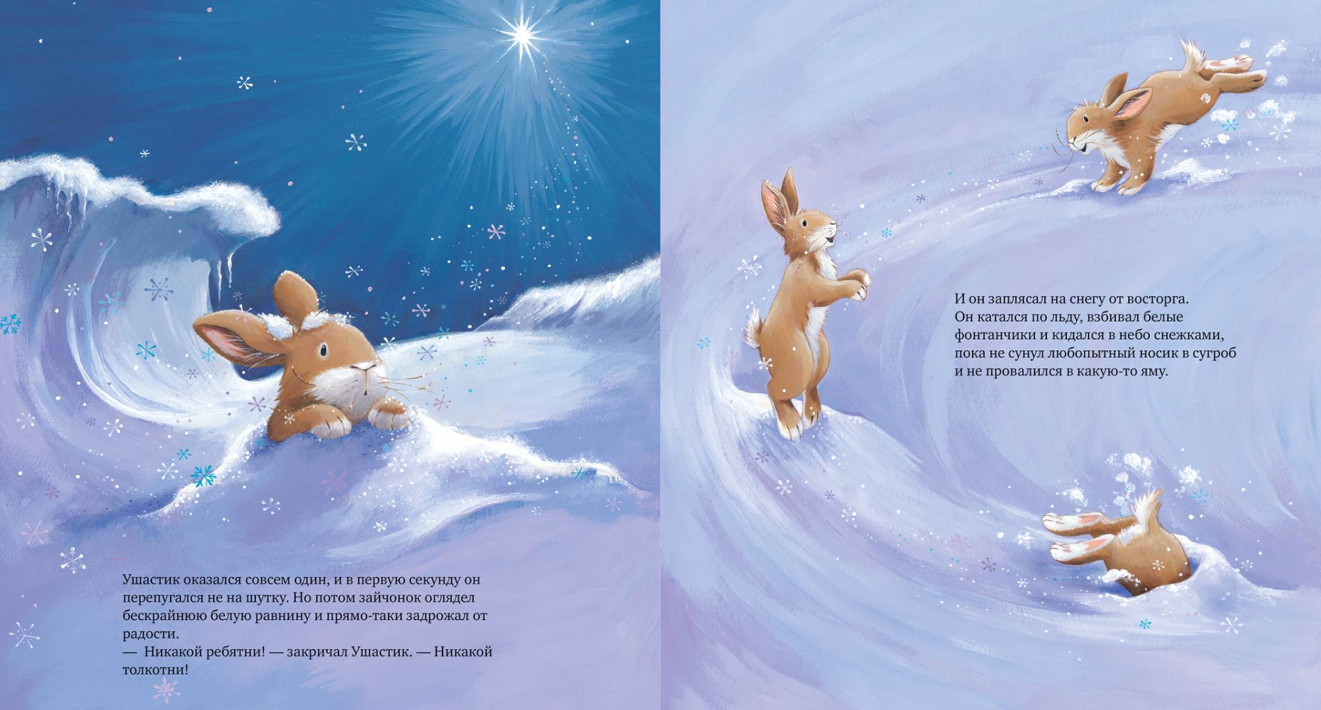 Бедный Ушастик никак не может уснуть — уж очень тесно в их норке. А сестрица Меховушка все норовит обнять брата покрепче. Ушастик решает сбежать из дома. Он встречает Альбатроса, который рассказывает ему о Дальнем Севере, где совсем ничего и никого нет, только звездное небо и снег. Ушастик отправляется в путешествие вместе с новым другом, но в дороге с ним приключается беда. Он остается совсем один... среди снега и льда. Сможет ли зайчик выбраться из передряги и вернуться домой?