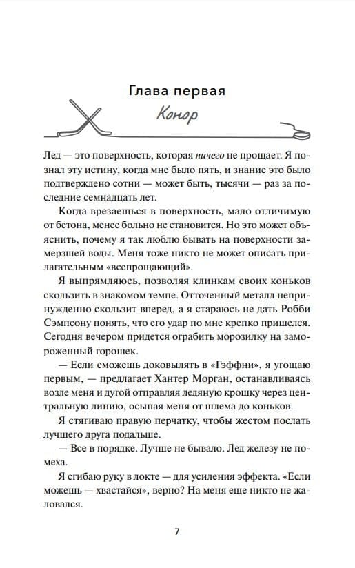 Она слишком хорошо знает, что именно ее присутствие подпитывает ярость, делающую Конора непобедимым на льду. Знает, почему он так настойчиво ее игнорирует — так же, как и она делает вид, будто его не существует.