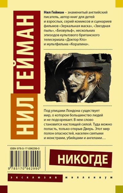 Под Лондоном скрывается место, о котором большинство людей даже не подозревает. Город монстров, святых, убийц и ангелов, рыцарей в сияющих доспехах и бледных девушек в черном бархате. Город тех, кто провалился сквозь трещины жизни. Молодой человек по имени Ричард, совершив акт доброты, оказывается в знакомом и в то же время странном мире под названием Никогде…
