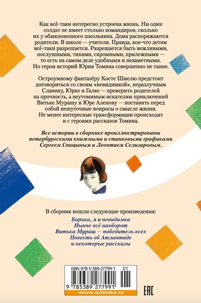 Как всё-таки интересно устроена жизнь. Ни один солдат не имеет столько командиров, сколько их у обыкновенного школьника. Дома распоряжаются родители. В школе — учителя. Правда, кое-что детям всё-таки разрешается. Разрешается быть вежливыми, послушными, тихими, скромными, прилежными — то есть на самом деле удобными и незаметными. Но герои историй Юрия Томина совершенно не такие.