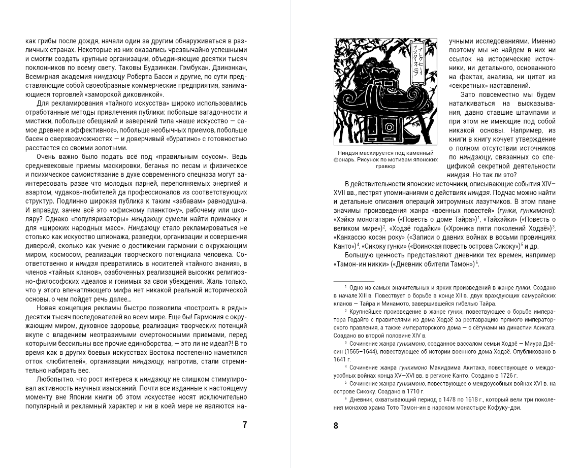 При подготовке книги автор использовал многочисленные японские источники, в том числе средневековые «гункимоно» (военные повести), истории семей ниндзя, наставления, передававшиеся сотни лет из поколения в поколение.
