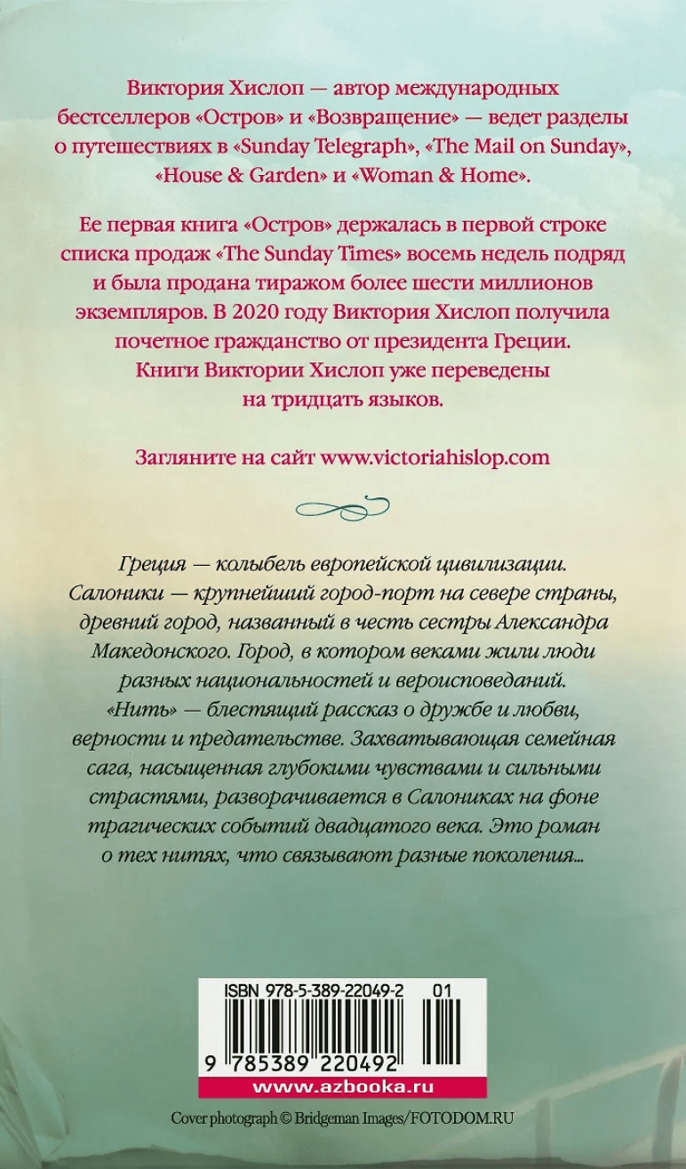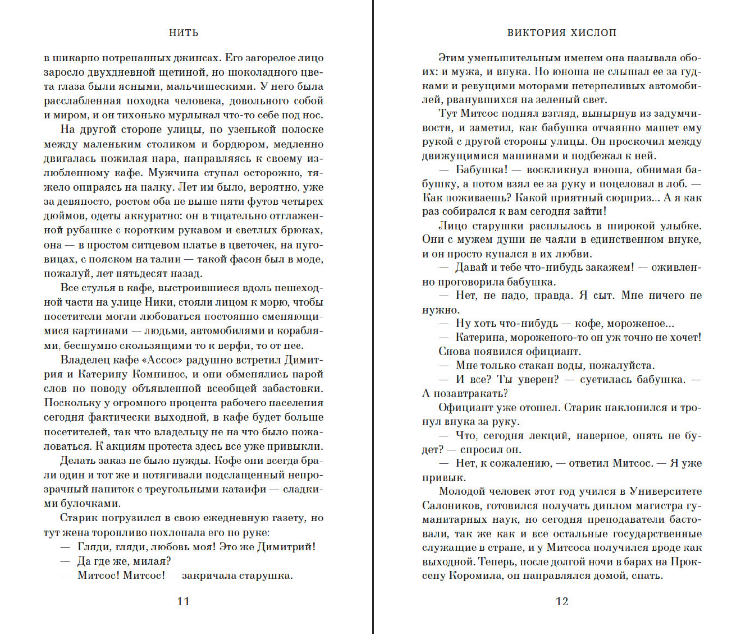 «Нить» — блестящий рассказ о дружбе и любви, верности и предательстве. Захватывающая семейная сага, насыщенная глубокими чувствами и сильными страстями, разворачивается в Салониках на фоне трагических событий двадцатого века. Это роман о тех нитях, что связывают разные поколения…