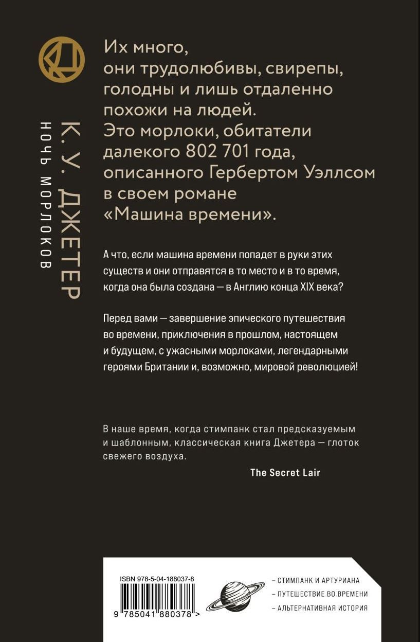 Помните удивительный рассказ Путешественника во времени о его приключениях в далеком-далеком будущем Земли, когда человечество разделилось на две расы — «рабочих» морлоков и «элиту» элоев? Помните, что Путешественник снова отправился в то время и не вернулся? Так что с ним случилось? Не попала ли машина времени в руки морлоков и не отправились ли они в Англию времен Герберта Уэллса? Кто сможет остановить их охоту на человеческий скот?