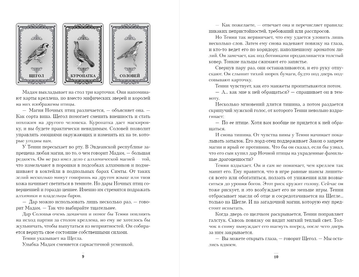 О них говорят только шепотом, ведь в Эвдеанской республике запрещена любая магия. «Ночные птицы» — девушки, которые обладают великой волшебной силой, передаваемой через поцелуй. Они могут изменить внешность, сделать человека невидимым или управлять эмоциями окружающих.