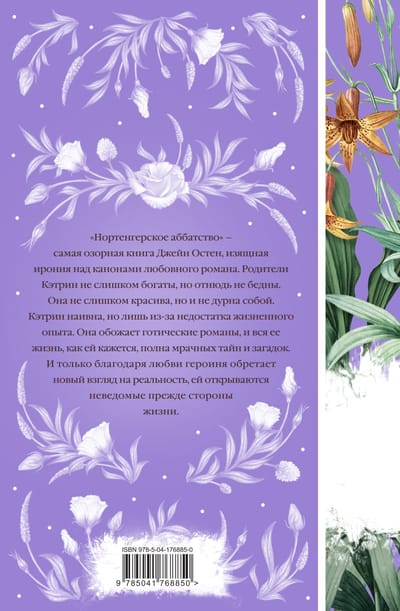 «Нортенгерское аббатство» — самая озорная книга Джейн Остен, изящная ирония над канонами любовного романа. Родители Кэтрин не слишком богаты, но отнюдь не бедны. Она не слишком красива, но и не дурна собой. Кэтрин наивна, но лишь из-за недостатка жизненного опыта. Она обожает готические романы, и вся ее жизнь, как ей кажется, полна мрачных тайн и загадок. И только благодаря любви героиня обретает новый взгляд на реальность, ей открываются неведомые прежде стороны жизни. Джейн Остен (1775—1817) — английская писательница, провозвестница реализма и основоположница «семейного романа». Ее книги покоряют безыскусной искренностью, простотой сюжета, глубиной психологического портрета героев и ироничным «английским» юмором. Во всех колледжах и университетах Великобритании ее романы обязательны для изучения. Остен родилась в семье священника, где бытовали совсем не чопорные нравы. Не получив почти никакого формального образования, много читала и уже в четырнадцать лет начала писать. При жизни ее книги публиковались анонимно, от лица некой «Леди». Помимо многочисленных экранизаций романов, и о жизни писательницы было снято несколько художественных фильмов.