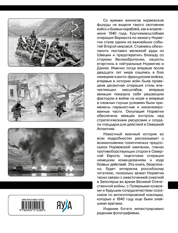 Со времен викингов норвежские фьорды не видели такого скопления войск и боевых кораблей как в апреле-июне 1940 года. Крупномасштабная операция Вермахта по захвату Норвегии стала одним из важнейших событий Второй Мировой. Стремясь обезопасить поставки железной руды из Швеции и предотвратить блокаду со стороны Великобритании, нацисты вторглись в нейтральные Норвегию и Данию. Именно тогда впервые после двадцати лет мира сошлись в бою немецкие и англо-французские войска, впервые в истории войн была проведена десантная операция столь впечатляющих масштабов, впервые авиация показала себя решающим фактором в войне на море и впервые в сложных горных условиях были применены парашютные и механизированные части. Оккупация Норвегии обеспечила немцам контроль над стратегическими ресурсами и создала плацдарм для действий в Северной Атлантике.
