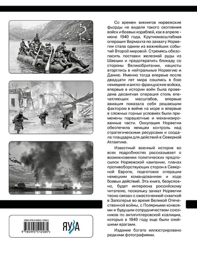 Известный военный историк во всех подробностях рассказывает о возникновении политических предпосылок Норвежской кампании, планах противоборствующих сторон в Северной Европе, подготовке операции немецким командованием и ходе боевых действий. Эта книга, безусловно, будет интересна читателю, поскольку захват Норвегии тесно связан с ожесточенной схваткой в Заполярье во время Великой Отечественной войны, с Полярными конвоями и будущим сотрудничеством союзников по антигитлеровской коалиции, которые в 1940 году еще были злейшими врагами.