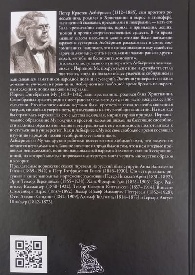 Норвежские сказки, записанные и пересказанные Петером Кристеном Асбьёрнсеном (1812–1885), перевели на русский язык супруги Анна Васильевна Ганзен (1869–1942) и Петр Готфридович Ганзен (1846–1930). Сто четырнадцать рисунков в книге выполнили норвежские художники Петер Николай Арбо (1831–1892), Эрик Теодор Вереншёлль (1855–1938), Ханс Фредрик Гуде (1825–1903), Карл Рейнгольд Калмандер (1840–1922), Теодор Северин Киттельсен (1857–1914), Винсент Столтенберг Лерхе (1837–1892), Ялмар Эйлиф Эммануэл Петерссен (1852–1928), Отто Людвиг Синдинг (1842–1909), Адольф Тидеманд (1814–1876) и Герхард Август Шнайдер (1842–1873).