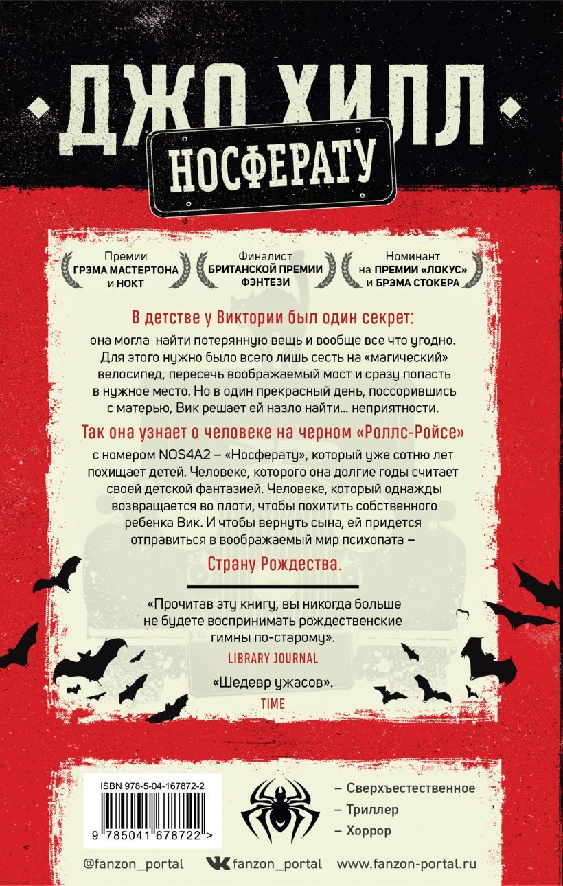 Чарльз Талант Мэнкс умеет обращаться с детьми. Он любит катать их на своем «Роллс-Ройс Призрак» 1938 года выпуска с номерным знаком NOS4A2. В нем он может проскользнуть из повседневного мира на скрытые дороги, которые ведут в удивительную — и ужасающую — Страну Рождества. В один прекрасный день Вик отправляется на поиски неприятностей — и находит Мэнкса. Это было целую жизнь назад. Теперь Вик, единственный ребенок, сбежавший от серийного похитителя, выросла и отчаянно хочет забыть о прошлом. Но Чарли Мэнкс никогда не переставал думать о Виктории Маккуин. Он снова в пути. Он снова подобрал пассажира — собственного сына Вик.