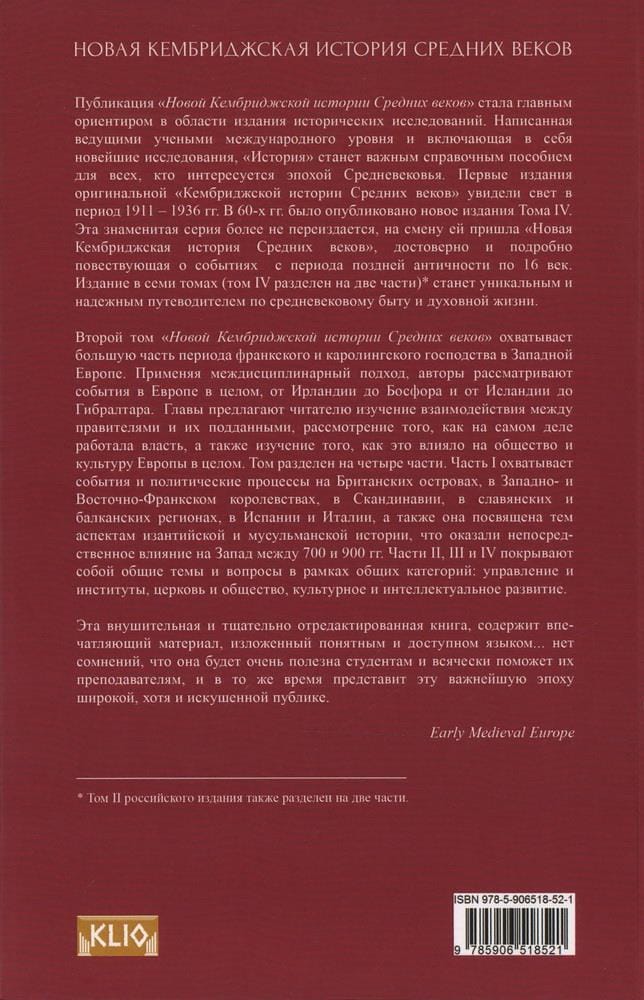 Второй том охватывает большую часть периода франкского и каролингского господства в Западной Европе — эпохи удивительной в своем политическом и культурном единстве, в котором находилось место фундаментальным, очень многообразным и системообразующим процессам.