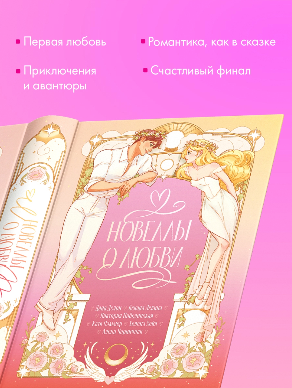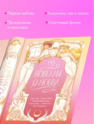 «Новеллы о любви» — коллекция избранных романтических историй в восхитительном оформлении: нежная обложка от ironeri, атмосферный дизайн страниц и романтичные розовые иллюстрации.