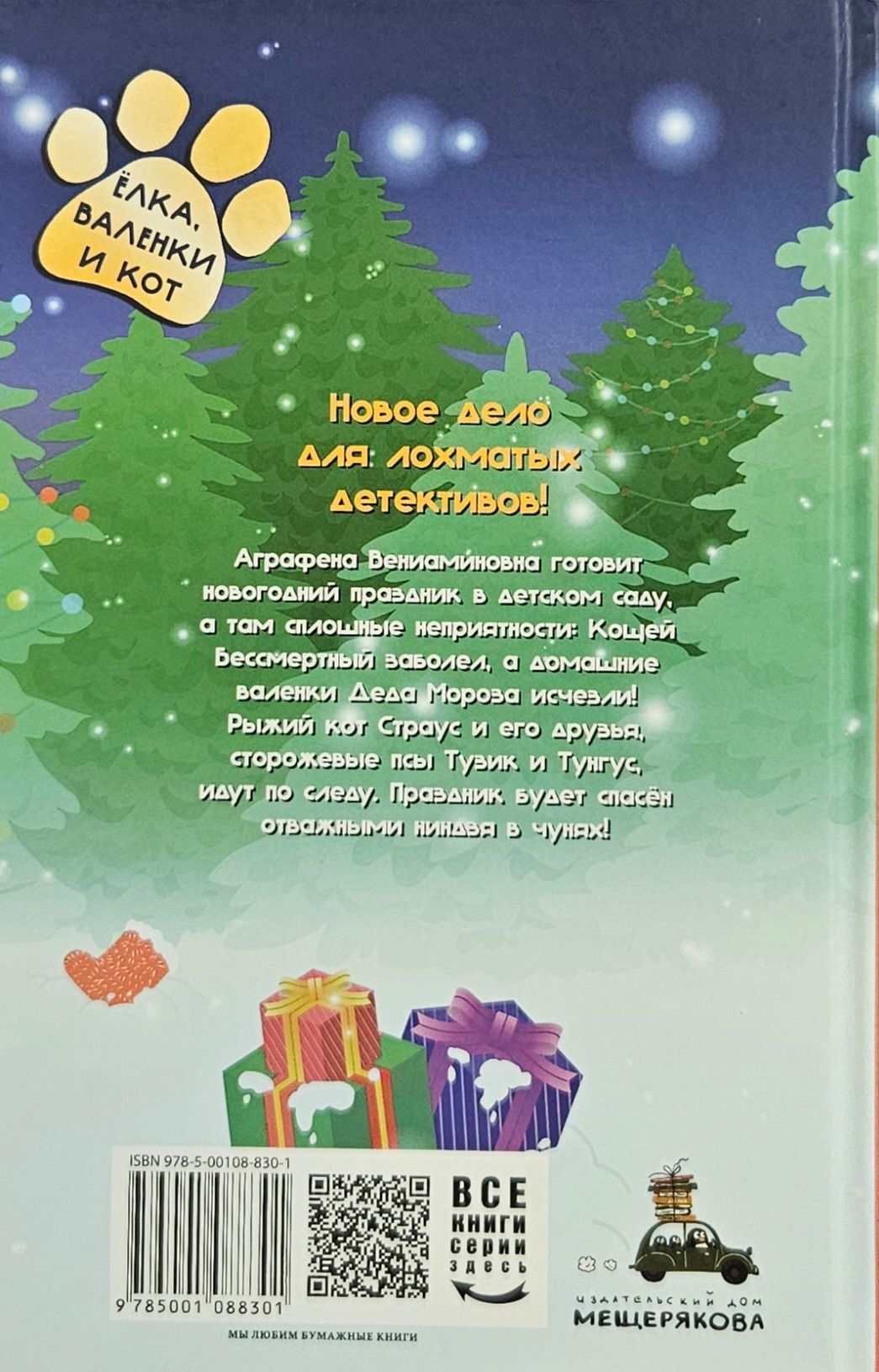 Новое дело для лохматых детективов! Аграфена Вениаминовна готовит новогодний праздник в детском саду, а там сплошные неприятности: Кощей Бессмертный заболел, а домашние валенки Деда Мороза исчезли! Рыжий кот Страус и его друзья, сторожевые псы Тузик и Тунгус, идут по следу. Праздник будет спасён отважными ниндзя в чунях!