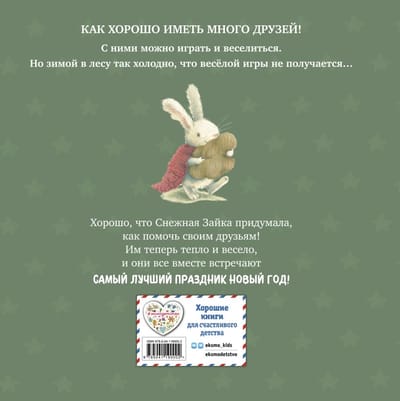 Как весело играть с друзьями в снежки, кататься на коньках и на санках! Но как же быть, если твоим друзьям холодно зимой и они убегают по домам? Маленькая Снежная Зайка обязательно что-нибудь придумает, чтобы никто не скучал в одиночестве!