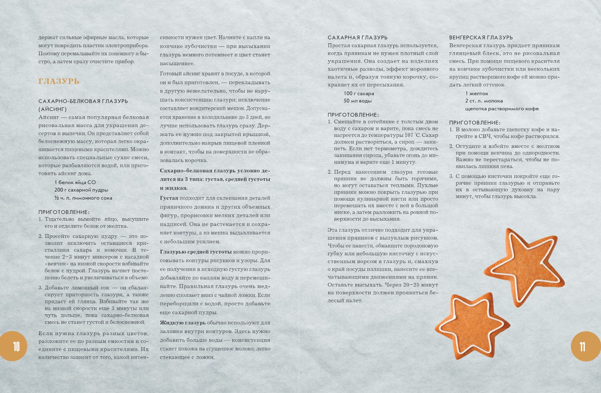 - Рецепты вырезных, лепных и печатных пряников — не только имбирных, но и молочных, ржаных, ванильных и даже традиционных пряников из других стран.