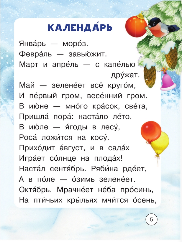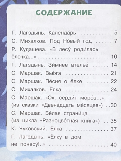 Книга стихотворений А. Барто, С. Маршака, К. Чуковского — это классика детской литературы. На этих произведениях выросло много поколений читателей. Бабушки с дедушками, мамы с папами давно-давно полюбили такие стихи, как «В лесу родилась ёлочка» Р. Кудашевой, «Под Новый год» С. Михалкова, «Зимние ателье» Г. Лагздынь и многие другие. А теперь пришла очередь и тех детей, которые уже начали читать самостоятельно. В этом сборнике удобного формата большие буквы, слова с ударениями и великолепные иллюстрации Е. Алмазовой и В. Шварова, которые прекрасно дополняют эти классические стихотворения.