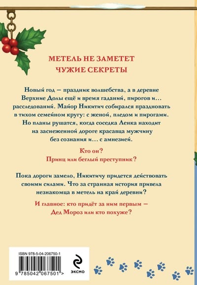 Новый год — праздник волшебства, а в деревне Верхние Долы еще и время гаданий, пирогов и… расследований. Майор Никитич собирался праздновать в тихом семейном кругу: с женой, пледом и пирогами. Но планы рушатся, когда соседка Ленка находит на заснеженной дороге красавца мужчину без сознания и… с амнезией. Кто он? Принц или беглый преступник?