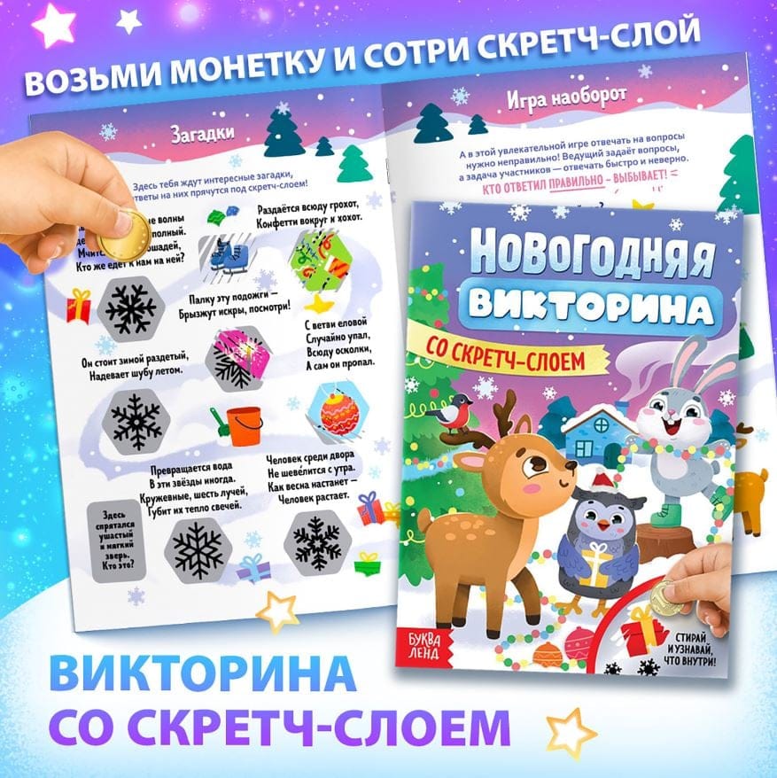 - Викторина со скретч-слоем — Новогодние вопросы ждут маленьких почемучек