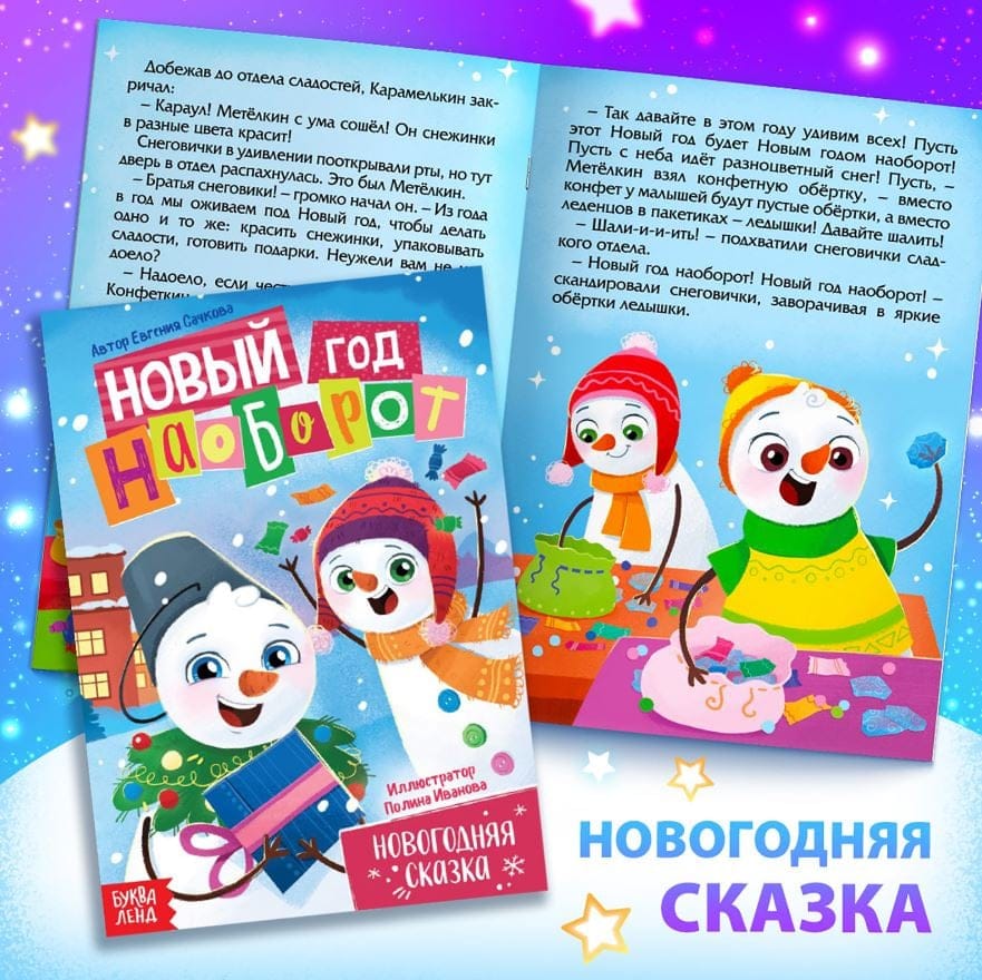- Новогодняя сказка — Снеговики взбунтовались и устроили Новый год наоборот. История о том, что произошло и как Дед Мороз спасал праздник.