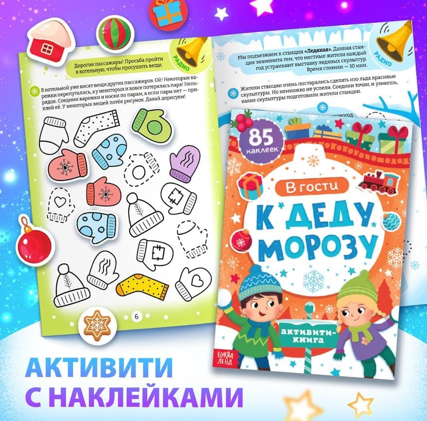 - Активити-книга с 85 наклейками — Увлекательные задания активити-книги развивают мышление и внимание.