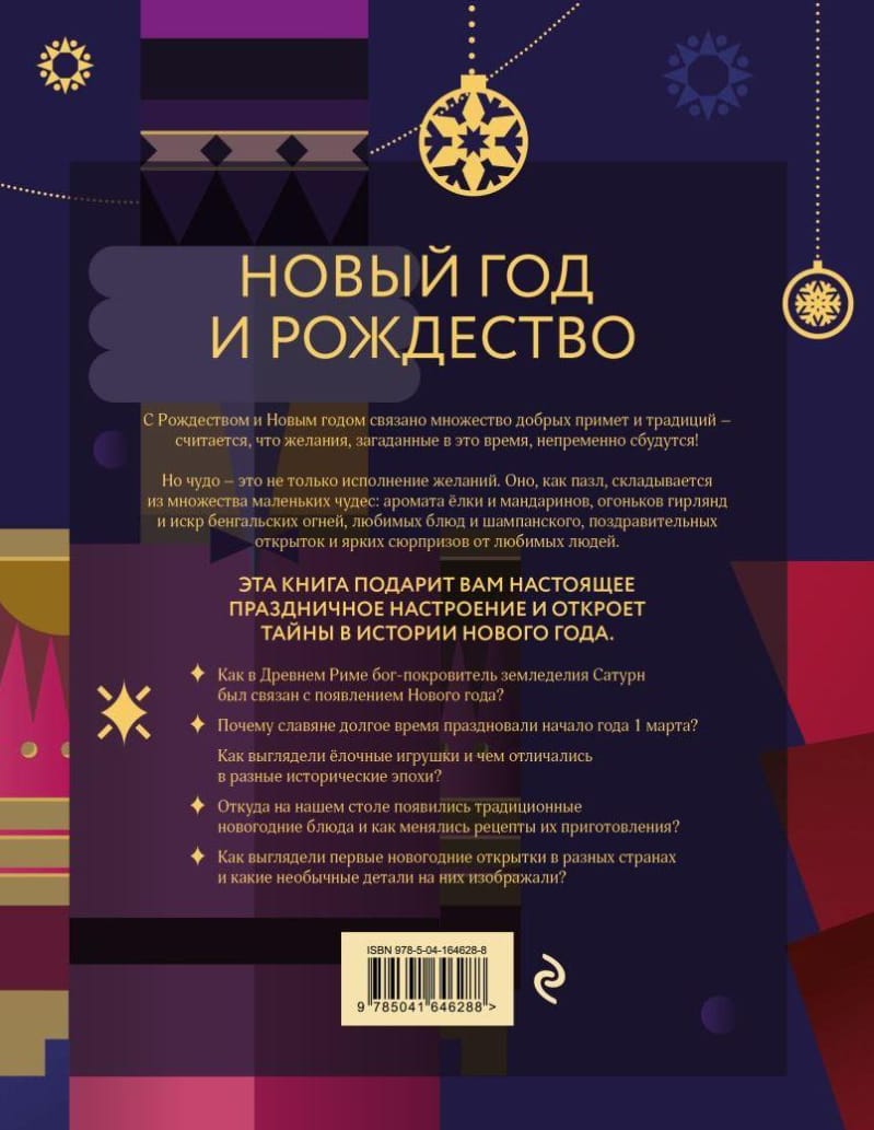 Для каждого из нас Новый год — это ожидание чуда и исполнения самых сокровенных желаний. Эта иллюстрированная энциклопедия поможет вам создать атмосферу праздника и открыть тайны самого долгожданного праздника в году! Благодаря этой книге вы узнаете о том, как отмечали Новый год в России и других странах мира в разные времена, какие елочные украшения создавались и из чего, что изображалось на первых поздравительных открытках и какие традиционные блюда готовили в разные исторические эпохи.