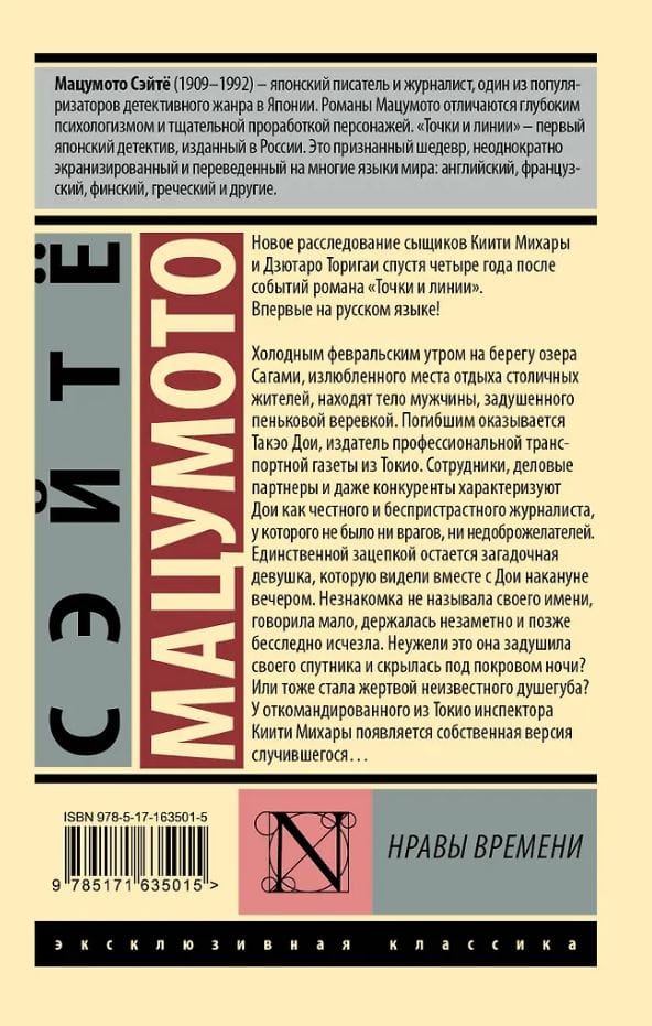 Холодным февральским утром на берегу озера Сагами, излюбленного места отдыха столичных жителей, находят тело мужчины, задушенного пеньковой веревкой. Погибшим оказывается Такэо Дои, издатель профессиональной транспортной газеты из Токио. Сотрудники, деловые партнеры и даже конкуренты характеризуют Дои как честного и беспристрастного журналиста, у которого не было ни врагов, ни недоброжелателей.