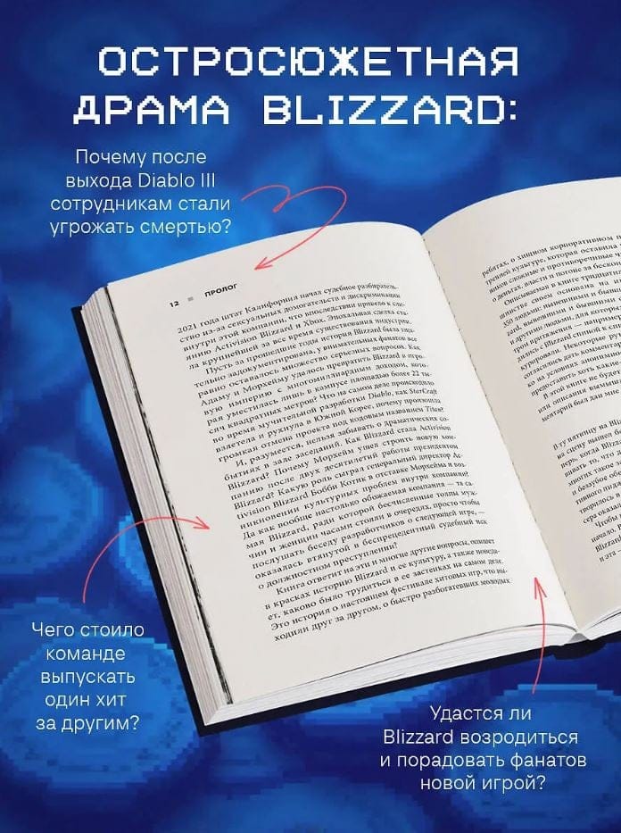 Книга основана на интервью с более чем тремя сотнями текущих и бывших сотрудников и описывает эпическую сагу Blizzard Entertainment во всей красе — от триумфального взлета к славе до стремительного падения. Эта история полна ярких личностей и драматических поворотов. Она рассказывает о том, что происходит, когда художественный идеализм сталкивается с безжалостным стремлением к прибыли.