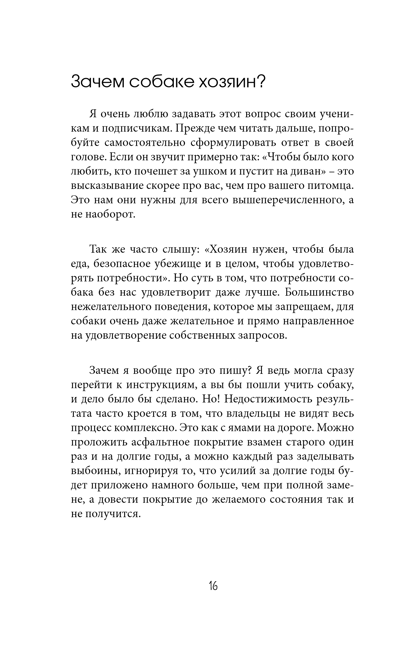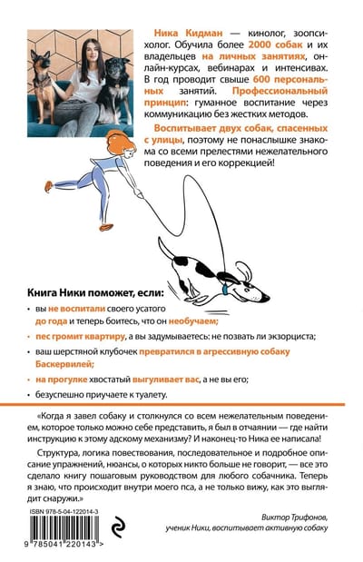 Перед вами настоящая собачья психология и ваш помощник в содержании питомца. Ее автор, Ника Кидман, опытный кинолог, зоопсихолог, блогер и автор курсов по воспитанию щенков и коррекции поведения у взрослых собак. А еще она хозяйка двух дворняжек и не понаслышке знает, какие у собак бывают проблемы!