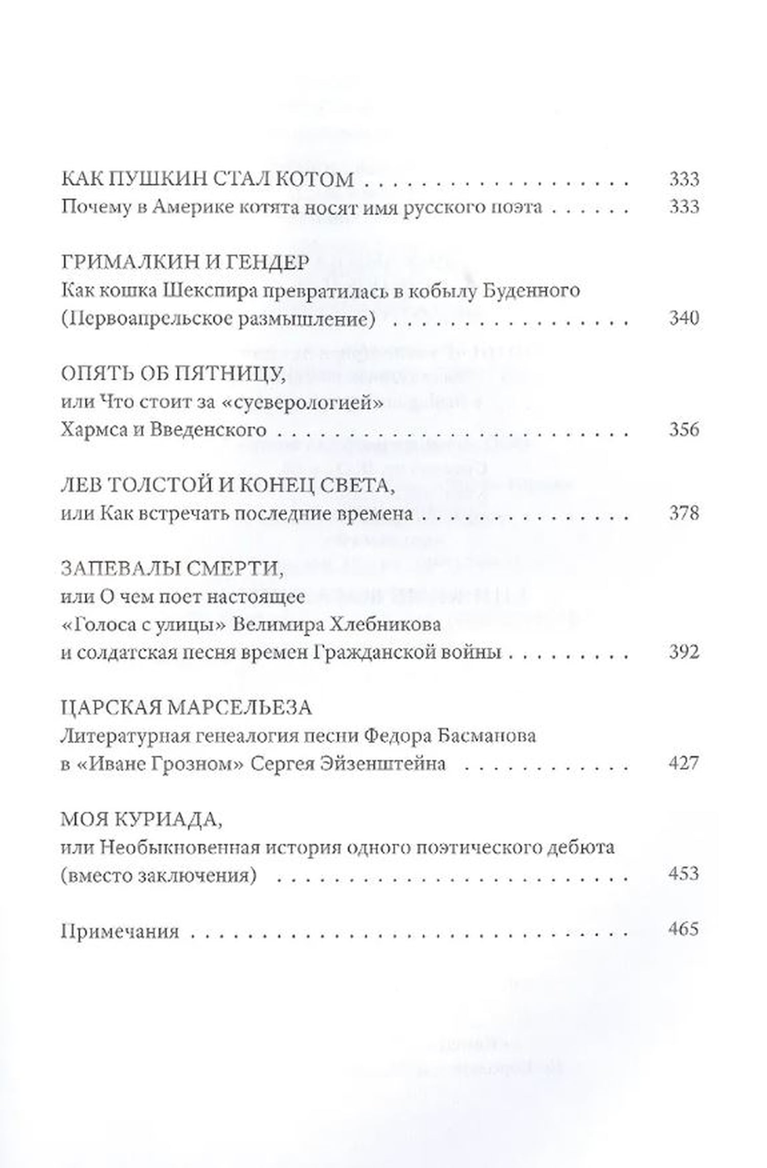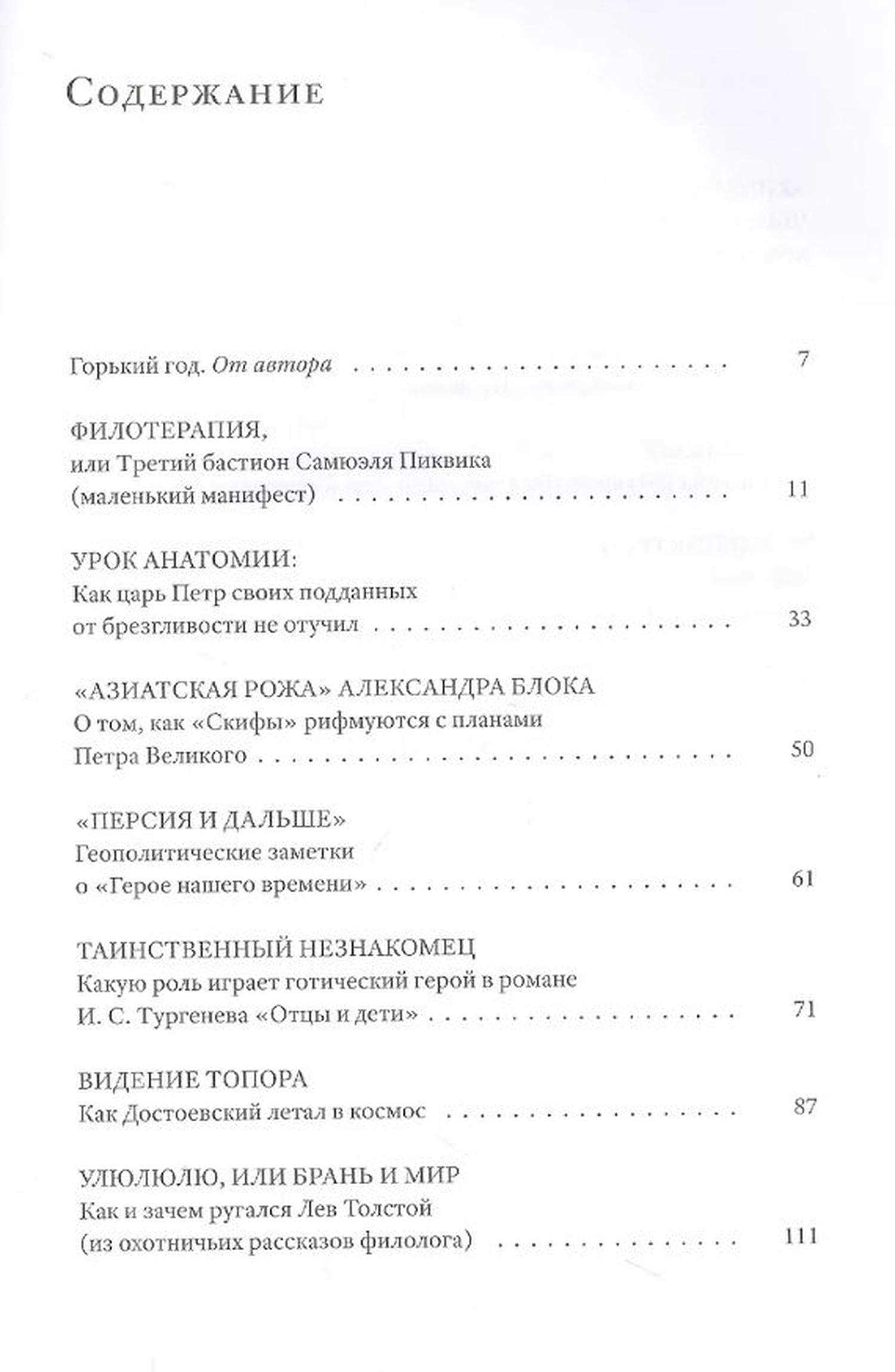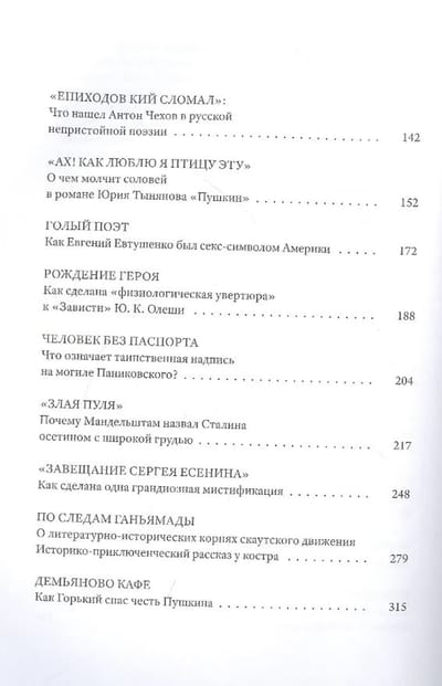 В основе книги - цикл «детективных» статей и заметок о культовых и незаслуженно забытых авторах, героях и текстах русской литературы от Александра Пушкина, Льва Толстого, Осипа Мандельштама, Даниила Хармса и Велимира Хлебникова до эстонского фантазера Ивана Народного и безымянного создателя трагической украинской народной песни; от разочарованного офицера Печорина, нигилиста Базарова, завистника Кавалерова, унылого конторщика Епиходова и неудачливого гусекрада Паниковского до счастливого котенка по имени Пушкин, игривой кобылы командарма Буденного и коллективистски настроенной курицы; от «Братьев Карамазовых» до «Девичьей игрушки». Большая часть вошедших в книгу «полусмешных» и «полупечальных» новелл объединена естественным стремлением автора разогнать хотя бы в мыслях и воображении сугубую меланхолию нашей исторической эпохи.
